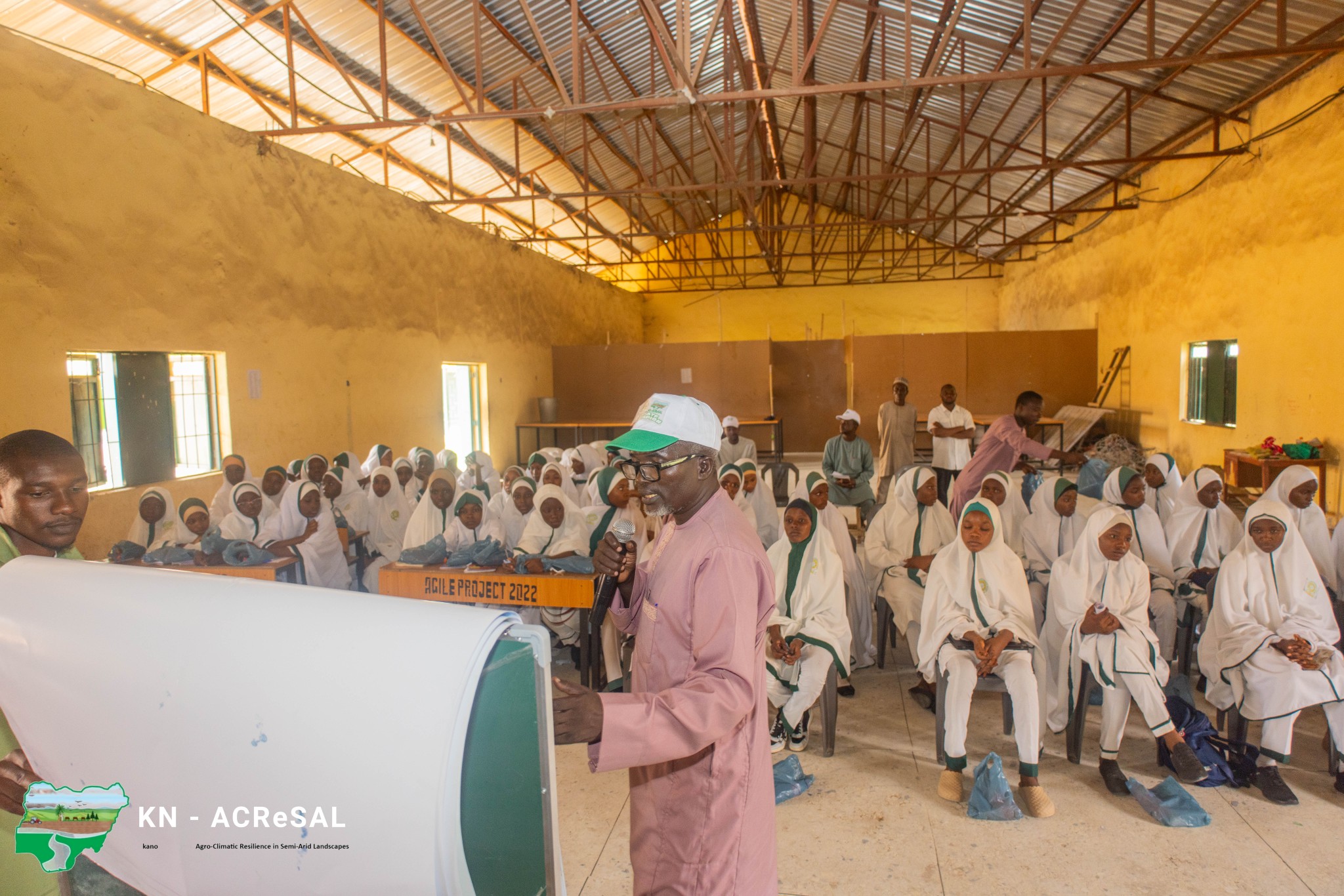 Kano-ACReSAL Embarks on Climate Change Education Campaign Across Major Science and Technical Schools in the State As part of Phase II of its Climate Change Education (CCE) initiative, the Kano-ACReSAL project today carried out a sensitization campaign at the Girls Science and Technical College, under the “Catch Them Young” initiative, the campaign which aims to nurture young environmental advocates and promote environmental sustainability. In his opening remarks, the Acting Project Coordinator of Kano-ACReSAL, Dr. Abdulhamid Bala, highlighted the persistent effects of climate change, which continue to pose a serious threat to global environmental sustainability. He stressed that these challenges necessitate strategic and urgent actions. Dr. Abdulhamid emphasized the project’s focus on schoolchildren as critical agents of change, stating that Kano-ACReSAL is committed to instilling sound environmental practices in the younger generation through its “Catch Them Young” initiative. He further urged the students to become environmental ambassadors for Kano State through spreading environmental awareness wherever they go which also go inline with the state’s ongoing initiatives under the leadership of His Excellency Alhaji Abba Kabir Yusuf, especially in the transition to solar energy. He cited the solarization of many Ministries, Departments, and Agencies (MDAs) and public streetlights as commendable examples. During the campaign, Kano-ACReSAL engaged environmental experts from academia and the project team to facilitate interactive sessions on climate change education. Dr. Ummi Khaltum Muhammad from the Centre for Dryland Agriculture, Bayero University Kano, and Professor Muhammad Alhaji from the Kano University of Science and Technology (KUST) Wudil, led an engaging discussion with students on the causes, impacts, and mitigation strategies of climate change. To reinforce the campaign’s impact, an Environmental Club was established in the school, to drive climate awareness within the school and surrounding communities. These ambassadors will be groomed under the project to play a key role in fostering an environmentally conscious society aimed at achieving sustainable development. As part of the campaign, 100 improved fruit tree seedlings were allocated to the school for planting to enhance its vegetative cover. The seedlings will be managed by the Climate Change Ambassadors and the school management. Additionally, Information, Education, and Communication (IEC) materials were distributed to maintain momentum and reinforce awareness. The campaign team comprised the Ag. Project Coordinator Dr. Abdulhamid Bala, Climate Change Officer Dr. Abdullahi Mu’azu, Natural Resource Officer, Social Livelihood Officer, Gender-Based Violence Officer, GIS Officer, Admin Officer, the Communication Officer and NYSC members alongside experts from academic institutions.